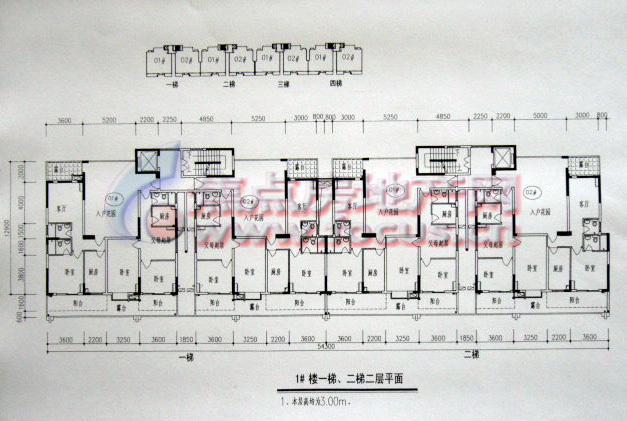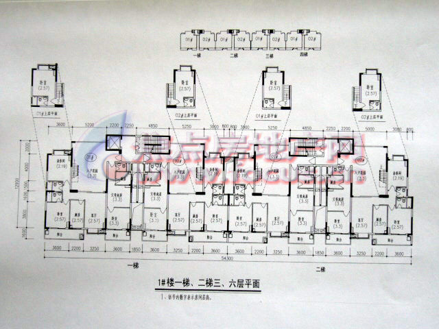 古龙居住公园(二期)1#楼一梯、二梯三、六层平面