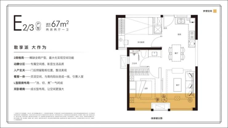 中铁诺德逸都肩扛居住使命,责任筑家。从园林的设计打造到户型的空间尺度,皆匠心独运。以更懂生活日常的品质户型,满足居者对家的无限想象。建面约67㎡阔景2房,格局方正,大面宽、实现户户全明、真正的南北通透。