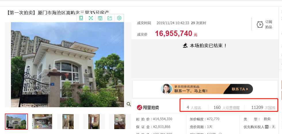 最近,海沧有一套豪宅出售,引发近万人围观,在经过4个人31轮的竞价后,以约1696万的价格成交了!