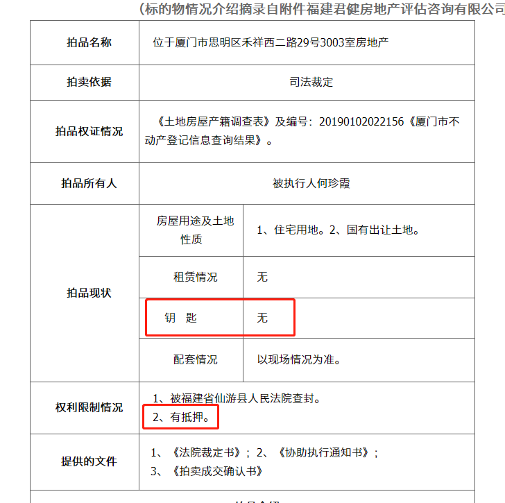 当然,该房源的遇冷也是有其原因。公开信息显示,这套房源目前无钥匙,已设定抵押,未注销。