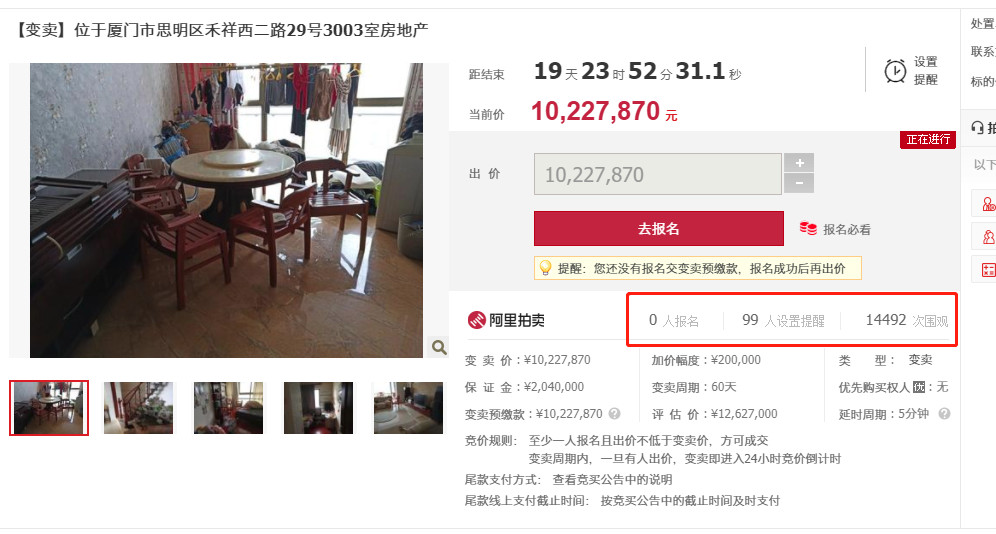 因为这些不足之处,这套房源虽然已经挂出拍卖一个多月,吸引了1.4万人围观,99人设置提醒,但是依旧没人敢出手。
