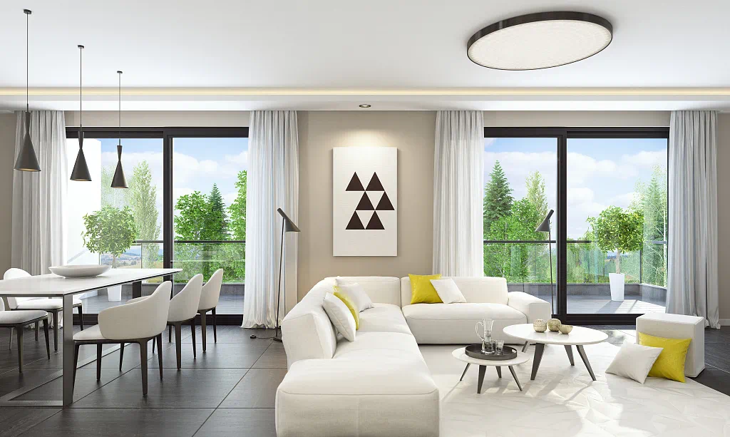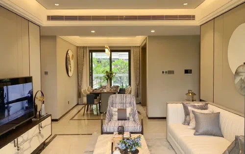 奢阔客厅连接南向阳台,更善于收集自然光景。无需移步阳台,静坐客厅即可沐浴阳光,欣赏窗外园林风景。无论是家人共处一室,享受天伦之乐,还是邀友聚会,开一个欢乐party,在这里都得到酣畅淋漓的彰显,让诗意美景成为生活背景,多重幸福生活于此演绎。