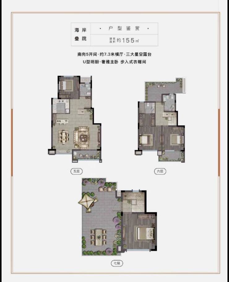 南向5开间,超大采光面,尽享大户雍容。约7.3米方正横厅,超40㎡开阔尺度,书客一体,自显气派。270°露台,奢享三大星空露台,家庭观景休息天地。U型明厨,奢雅主卧,独立卫浴,步入式衣帽间,雍容生活于此绽放。