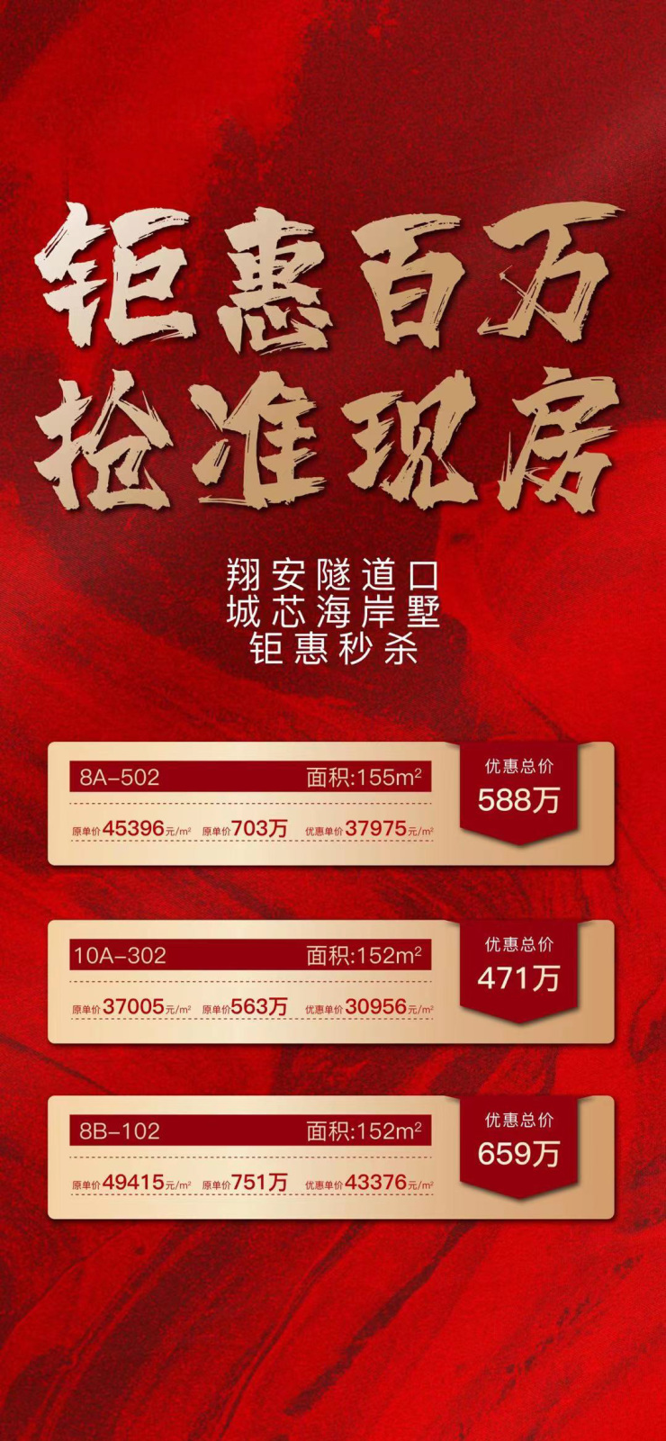 湾海头排,当之红盘,月末冲刺,惊爆一口价,前海湾钜惠百万抢准现房,471万起住瞰海叠墅!双会展|奥莱旁|湾海准现房,翔安隧道口,城芯海岸墅,钜惠秒杀!涨势来袭中,抢占即赚到!