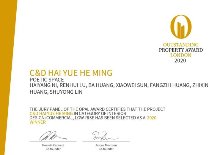 Outstanding Property Award-OPAL英国伦敦杰出地产大奖由全球驰名的Farmani Group创立,由来自全球20余位行业专家进行评选,自1985年以来一直是全球艺术、建筑、设计奖项的领导性机构。