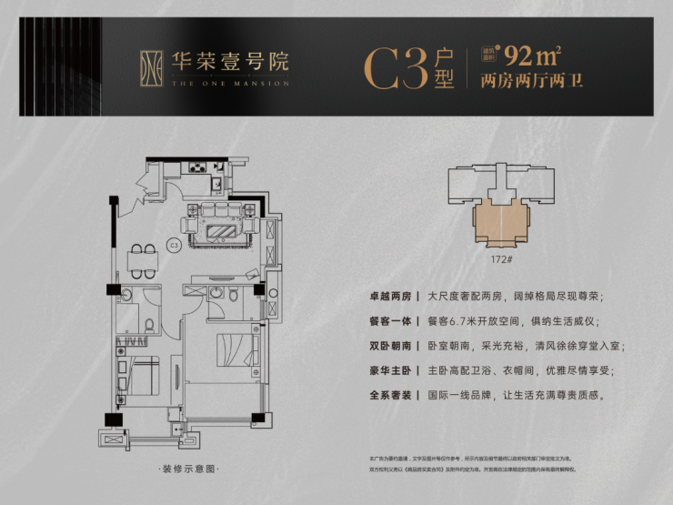 华荣壹号院岛内精奢小户 全系精奢装修拎包入住