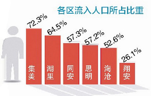 【数据】厦常住人口401万外地户口近六成 同安人口增速较高