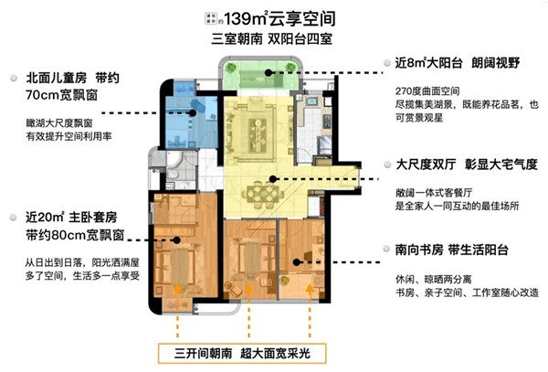 建筑面积约139㎡四居,三房朝南、动静分区、双阳台的空间设计,三代人生活亲密且互不干扰。二胎时代,儿女双全,是一种幸福也是一种责任,给儿女各自一片小天地,美满便是家的意义。