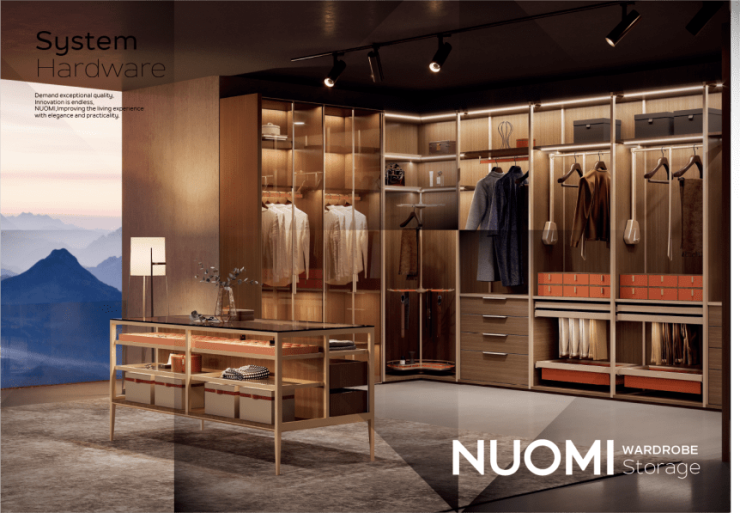 诺米「全屋五金」战略也适时进化为「全屋五金生态链」,以同风格、同颜色、同品质、同品牌的差异化四同法则,再一次引领行业发展浪潮。在战略引领之下,诺米的产品矩阵拓展至橱柜功能五金、衣柜收纳五金、精工水槽、基础五金、智能照明、铝材高定应用为核心的六大体系产品,提供一站式配齐的解决方案,赋能合作伙伴。