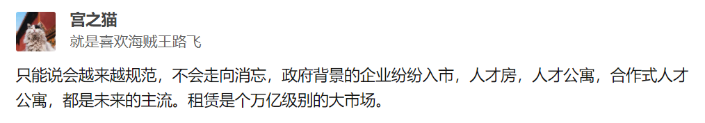 如自如所言,长租公寓并不是一个伪命题。长租公寓在美国、日本等发达国家都是成熟、主流的社会服务行业。中国长租行业虽然在去年发生了一些风波,但不可否认,长租公寓切实解决了我国租赁市场供需两端存在的 “产品错配、品质错配、服务错配”这三个问题。且近年来,长租公寓行业不断发展,在房源品质、租住服务等方面不断深耕,受到了越来越多租客和业主的认可:创邑尚居的租客@叮叮不吃辣说,选择创邑尚居这样正规的长租公寓入住,不用跟房东打交道,能够用适当的价格换取符合自身需求的租住环境和租住服务,真的是很棒的租住体验;同样身为创邑尚居业主的刘先生@骚气靓仔说,以前需要花费大量的时间精力在寻找合适租客、打理出租房屋(包括配齐必需家具与日用品)、处理租赁期房屋问题(如漏水、供暖)等环节上,不仅如此,还需要承担房屋空置期、房屋损坏等潜在损失。而交给创邑尚居后,每月都能获得稳定的租金收益,同时也不需要过多操心租赁问题,非常省心。