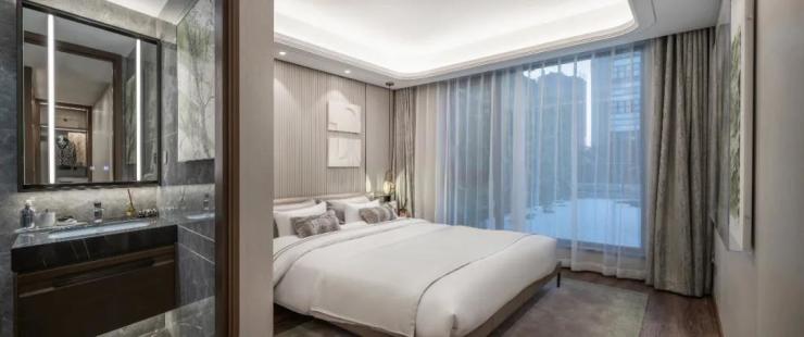 主卧套房的“奢侈酒店感”也很强,休憩空间、步入式衣帽间、卫浴空间,分区明晰,又动线简练。