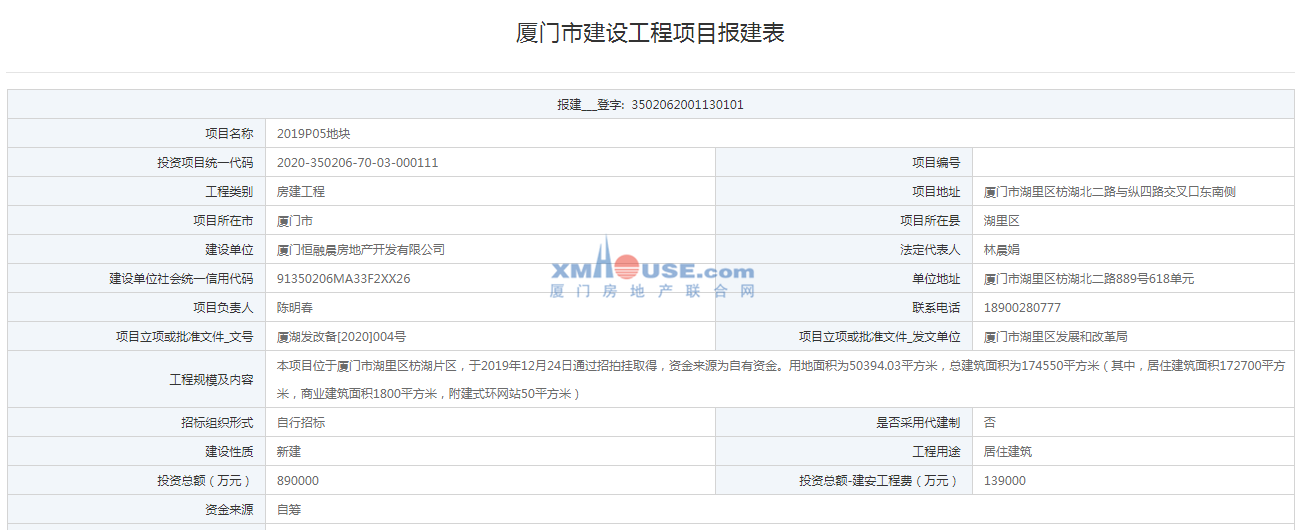 近日,2019P05地块报建信息公布,该项目位于厦门市湖里区枋湖北二路与纵四路交叉口东南侧,用地面积为50394.03平方米,总建筑面积为174550平方米(其中,居住建筑面积172700平方米,商业建筑面积1800平方米,附建式环网站50平方米),总投约89亿元。