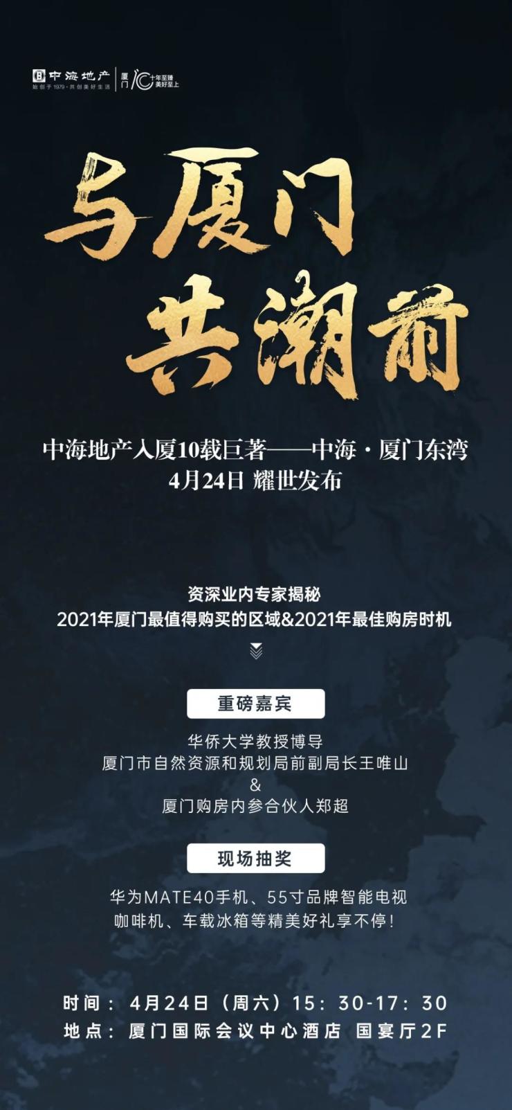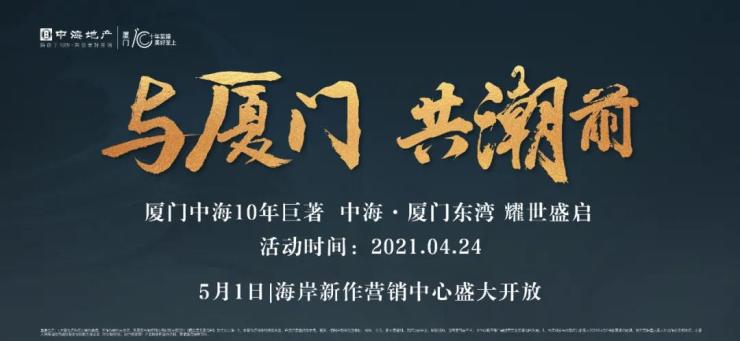 “与厦门 共潮前”,中海地产入厦十载巨著——中海厦门东湾,将于2021年4月24日下午在厦门国际会议中心酒店耀世发布。