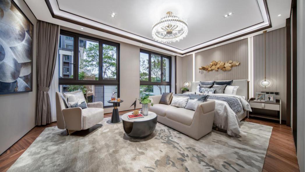 人的一生中,大部分有三分之一的时间,是在睡眠中度过的。卧室就成为使用最为频繁的功能空间。尊享私密空间,美景芳华纵览无余;清风阳光满室洋溢,尽显雍容气度,空间功能随心而定,生活不止舒适,从容厚待生活点滴。