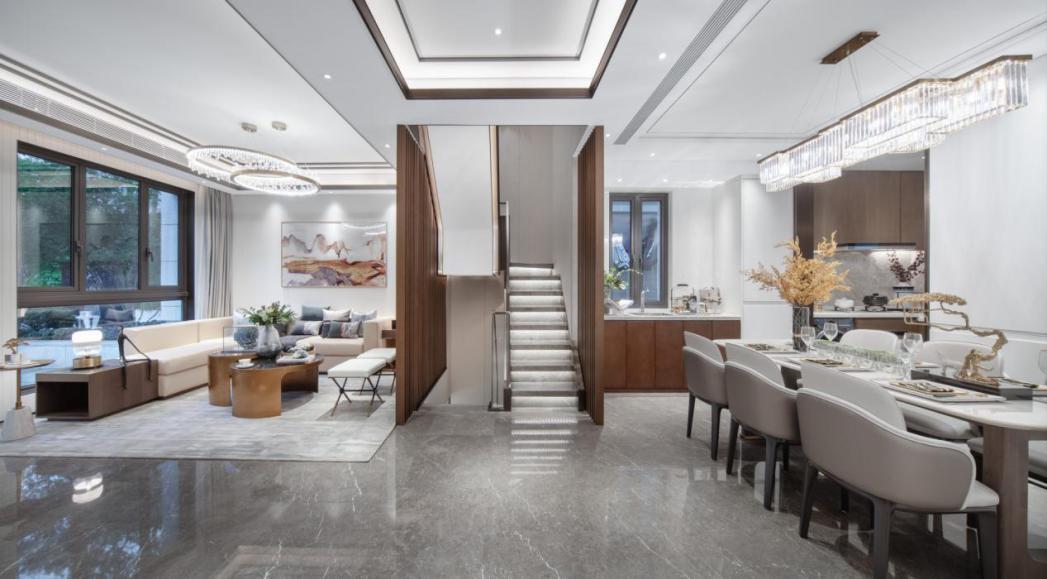 有别于厦门大部分横厅竖厅混为一体别墅项目,首开龙湖璟宸府以人为本,将餐客厅动静分区,为中西双厨的生活立序基础,打造舒适生活动线。利用餐客厅互补的空间和视野,在功能独立的前提下实现了功能尺度的人性化,兼具明亮与开阔,兼容多变的家庭生活场景,家人围坐在此谈天说地,或是来场家庭电影,看场球赛,所谓温馨,大抵如此。亦可在某个午后招待亲朋好友,来一杯清茶畅谈人生,舒适又自在。阔绰之中,盛载名门阖家的美好时光。