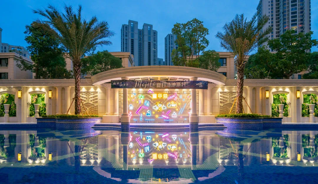 生活的优越感,楼下便是约500㎡法式艺术泳池的配置,石材背景墙与法式园林的叠景设计,满满的法式情调。