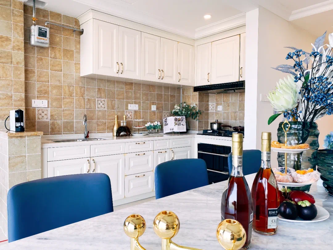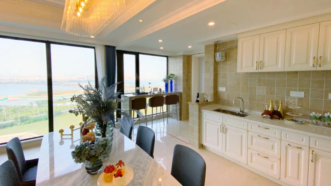 厨房、餐厅、客厅畅连一线,打造宴会亲朋的宽奢空间。