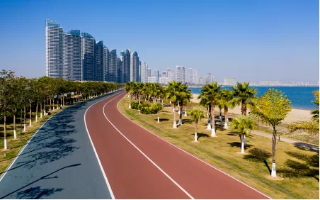 彩色赛道、椰风绿带、堤岸步道、黄金沙滩......居住于此,滨海浪漫线或许可以成为你日常跑步、吹风散心、休闲娱乐的常驻之地。
