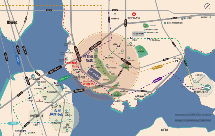 排名前列,新城规划了厦门新会展中心和厦门新体育中心两大高规格的市级配套。前者为2023年世界海产品大会准备的,后者则是为2023年亚洲杯准备的。其面向世界的格局不是其他板块所能比,直接将其人居格局拉到世界的维度。最重要的是,两大配套都明确了建成投用时间线,三年崛起的规划让其优于其他板块,也打破了传统的十年成熟周期。