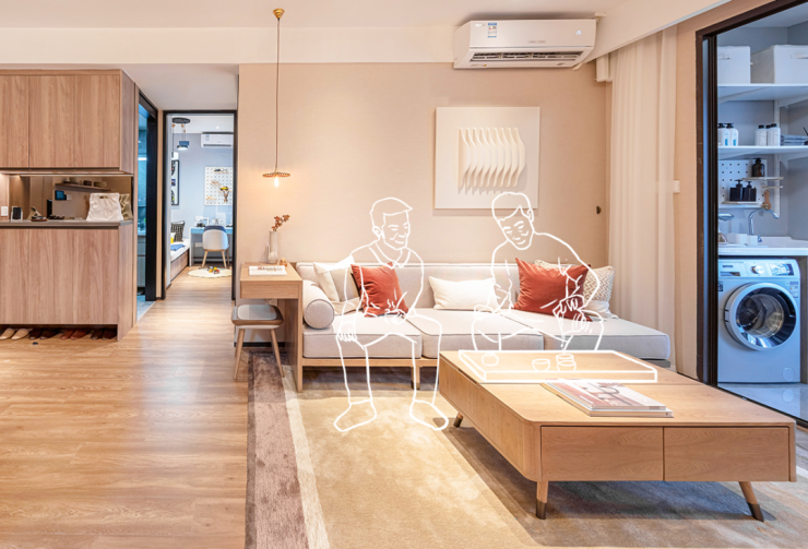楼栋一字排布,户外景色都被“收藏”在会客厅的视野里,晕染成璀璨生活的底色。与太太畅谈,与宝贝游戏,清风穿堂而过,生活的情调于光影交错中一一呈现,更多享法。