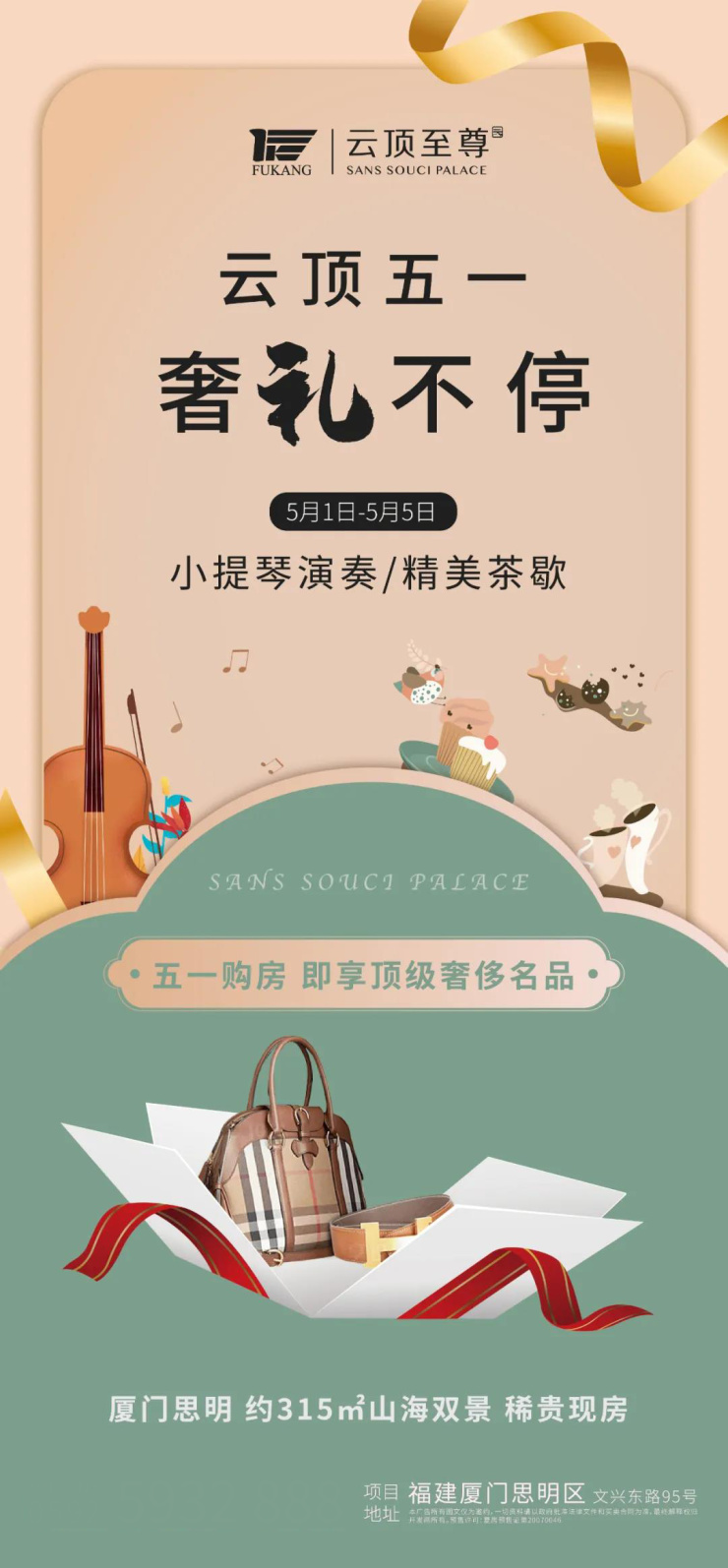 云顶优质5月1日-5月5日,小提琴演奏/精美茶歇,五一购房,即享先进奢侈名品。厦门思明,建面约315㎡山海双景,稀贵现房!