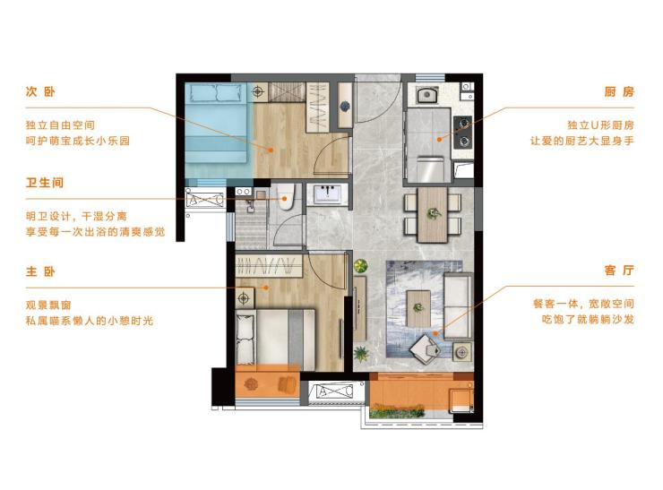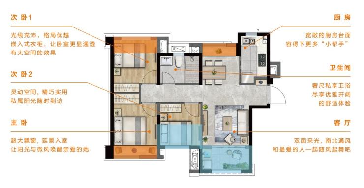 60-79m2二/三房,时光虽小生活不小