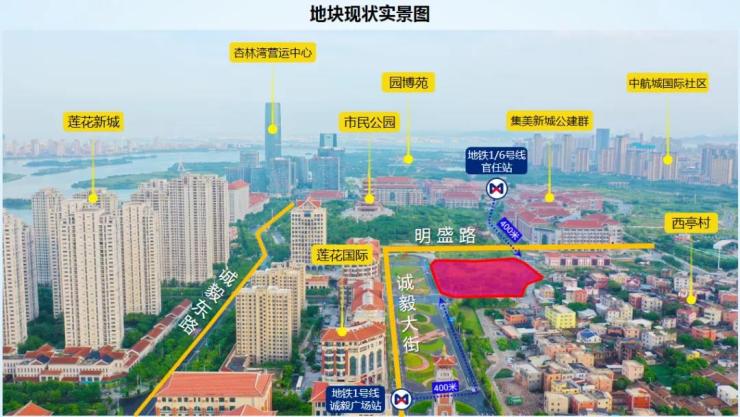 地块位于集美新城核心区,500米范围内分布地铁1号线官任站&诚毅广场站,交通可达性上佳;紧邻集美区行政服务中心、市图书馆集美新馆、诚毅科技探索中心、集美塔等设施,拥有大量办公、商务、旅游人群集聚;周边莲花新城居住区、中航城C区,与软件园三期和杏林湾营运中心等产业载体形成有机互动。