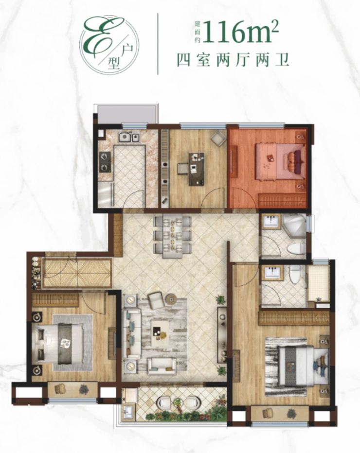 平奢适通透四房,格局方正,彰显大家风范,阳光大客厅空间通透,营造阔绰空间感,让亲朋好友聚会不再拥挤,开放式餐厅紧邻厨房,料理生活更加自如,大可沉浸在你的厨艺中,南向瞰景大阳台,不仅解决了晒衣服的问题,同时还增加了空间感。