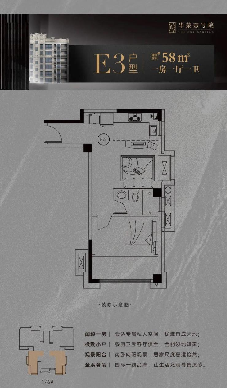 岛内神秘新盘华荣壹号院 最小户型建面约58㎡1房