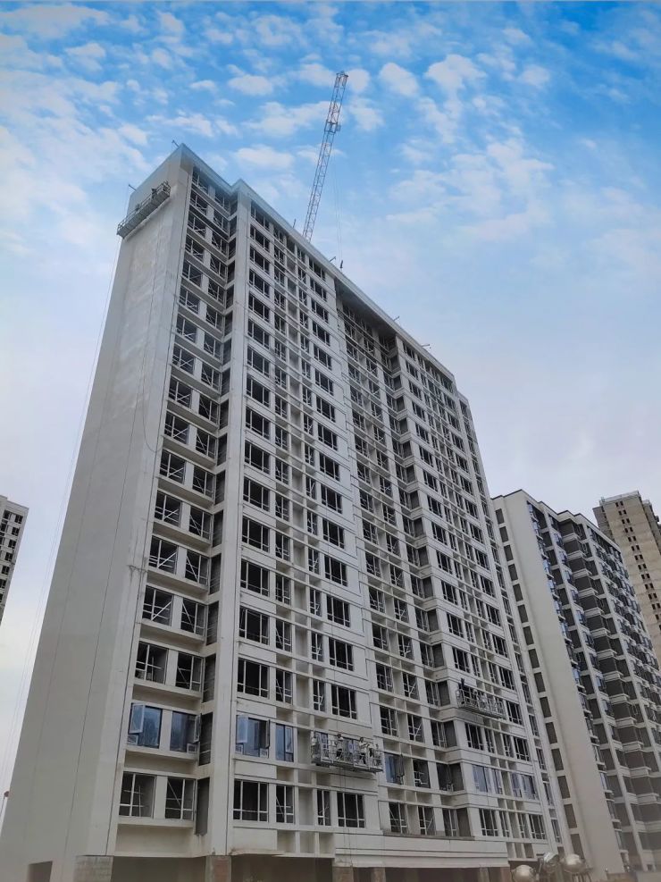 主体结构全部封顶完成,外墙涂料喷涂施工完成15%,外窗安装完成15%,砌体砌筑完成60%,精装样板完成90%。