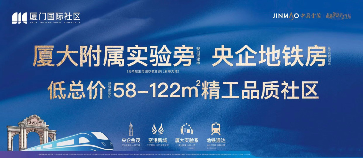 金茂厦门国际社区,低总价+名校旁+地铁房,千亿空港新城核芯区,厦大附属翔安实验旁,建面约58-122㎡央企精工社区!