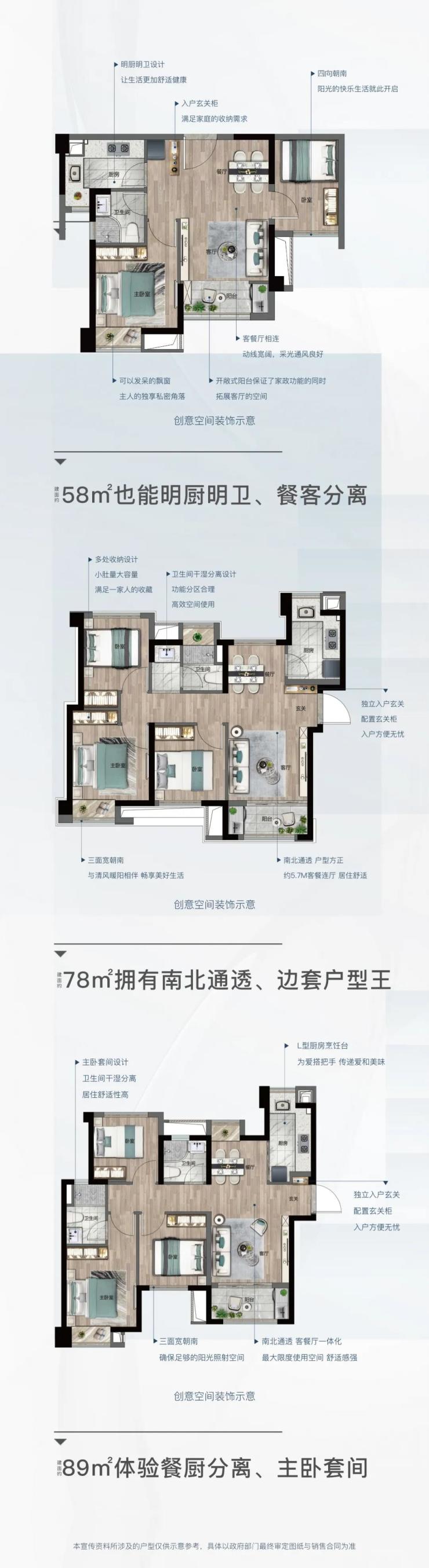 央企金茂,脉承中化集团的精工品质,以领衔时代的高端产品思维,融合青年生活基因与年轻前卫态度,建面约58-122㎡央企精工品质社区,凝练优质空间质感,每一处空间精心筑造,每一个细节妙到巅毫,小户空间亦有精工品质。