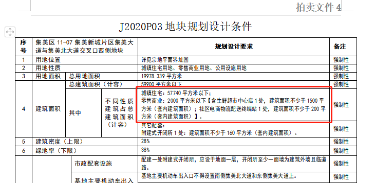 根据地块规划条件要求,该地块除了要求住宅面积为57740平方米之外,还要求要有2000平左右的面积来做零售商业。