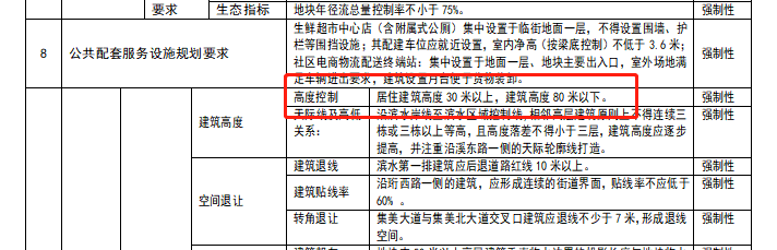 此外,地块建筑设计方面还要求居住建筑高度为30米以上,80米以下。这也就意味着该地块不能做别墅也不能超过30层。只能做洋房、小高层或是高层产品。