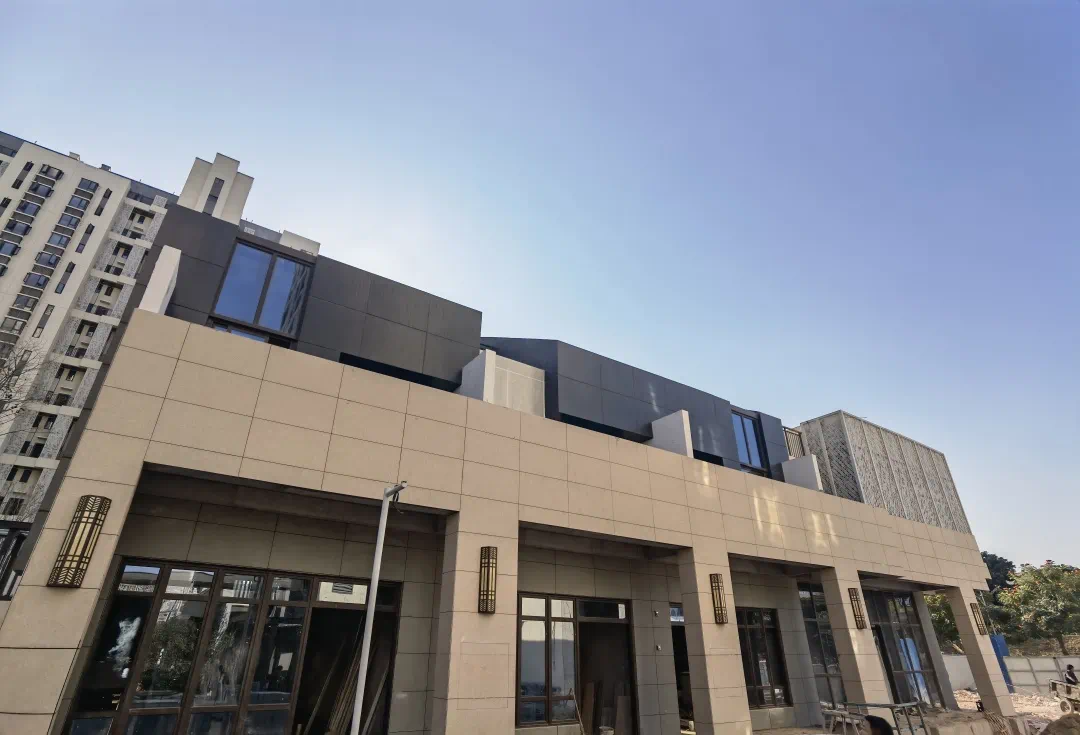1-12号楼公区精装施工完成90%,室内简装施工完成80%,外立面施工收尾中。