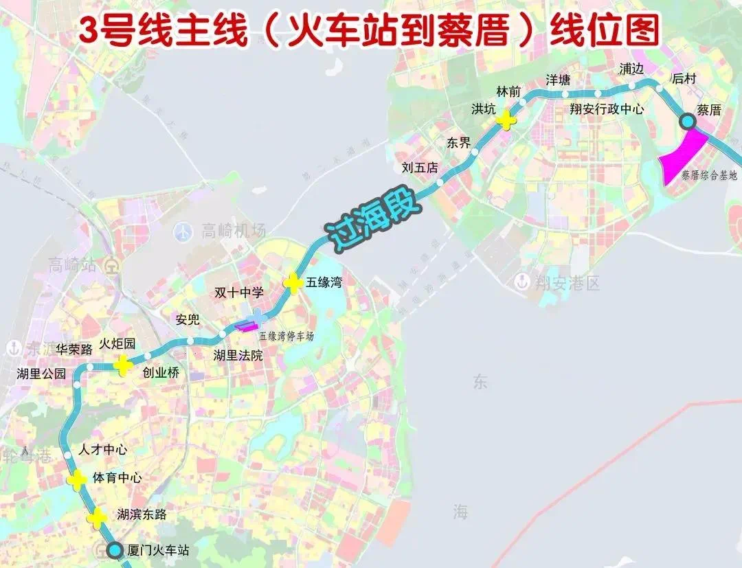 据悉,厦门地铁3号线计划于2021年6月底开通,全线起至沙坡尾,途经厦门火车站、翔安蔡厝站,终于翔安机场,是岛内连接翔安区的首条地铁线,对于推进岛内外一体化建设发展具有重要意义。