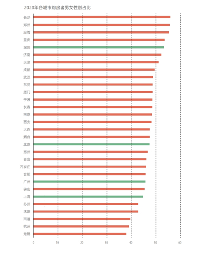 其中,厦门男女购房比例接近各半,位居全国第12位,数据显示,女性购房占比逐年递增。