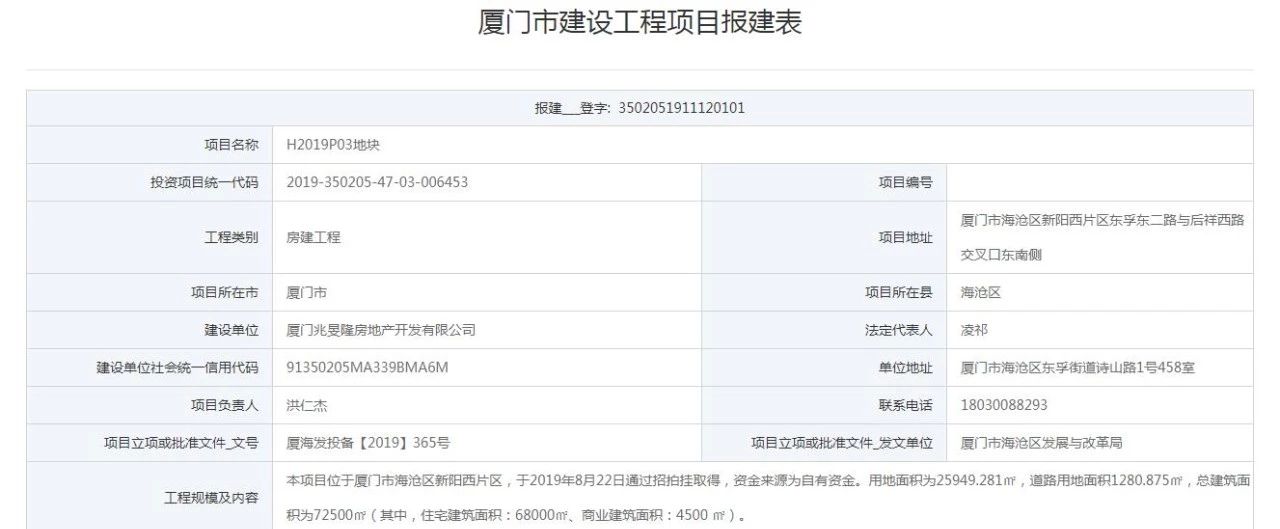 从厦门市公共资源交易网获悉,建发马銮湾新城H2019P03地块报建信息公布,该项目位于海沧区新阳西片区东孚东二路与后祥西路交叉口东南侧,用地面积为25949.281㎡,道路用地面积1280.875㎡,总建筑面积为72500㎡,其中住宅建筑面积68000㎡、商业建筑面积4500 ㎡,总投约24亿。