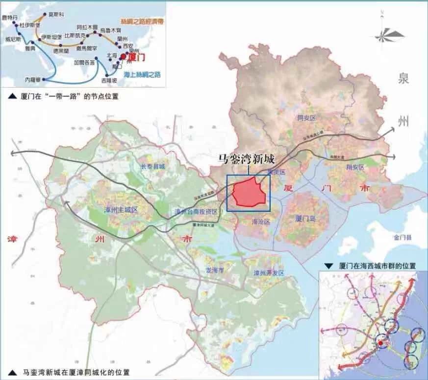 马銮湾新城位于厦门市西北部,西邻漳州长泰,跨海沧、集美两区,是厦门黄金海湾带轴心,厦门的城市副中心,厦漳龙同城化的中间枢纽和重要门户。