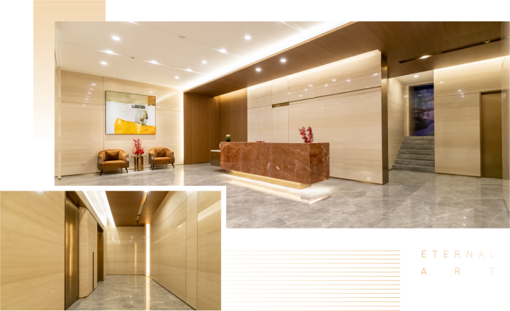 匠心营造理想生活场所——三重艺术入户大堂,开启了岛芯品质人居。奢阔明亮的挑高空间、大尺度设计,甄选石材立面,品质感十足的颜色搭配,让空间具有延展性,业主在其中更具归属感和礼遇感。