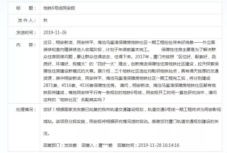 根据较新,市发改委回复网友还是表示:同安段将根据研究情况适时启动。