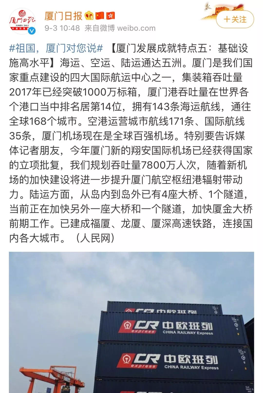 需要指出的是,9月初,以“坚持高质量发展,建设高素质高颜值现代化国际化城市”为主题的福建省庆祝新中国成立70周年厦门专场新闻发布会在省政府新闻发布厅举行。市委副书记、市长庄稼汉出席发布会,介绍厦门发展成就与成功经验,并回答记者提问。