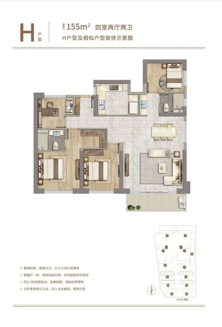 当生活回归居住本质,人们对舒适温馨的居住环境更加渴望。对于高净值人士来说,高品质的居住本质则意味着:空间尺度上的跨越,城市资源上的聚集以及生活方式的升级。生活有多少场景,家就有多少想象。建面约155㎡环幕宽境边套大四房,以奢阔的空间尺度,让舒适生活成为日常!