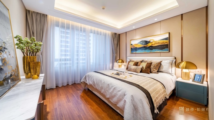 融侨铂樾府深谙主卧的舒适度对于居者的意义,设计张弛有度的套房式主卧,配备独立卫生间及步入式衣帽间,让生活大有场面。满足居者的私密感和归属感的同时,无论功能设置还是局部尺度都面面俱到,以不凡的气度,匹配居者的宽境人生。