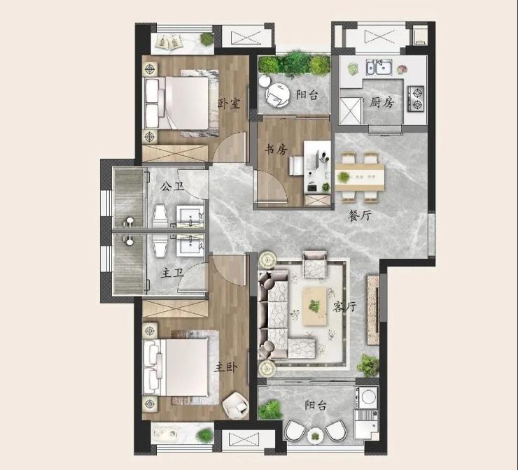 本次加推的6#楼中,户型也是一大亮点。建面约89-101㎡三房户型,其中建面约100㎡户型,以南北通透,纳含宽景双阳台、动静分区、餐客一体等布局特点,全方位为人们的理想生活而打造。