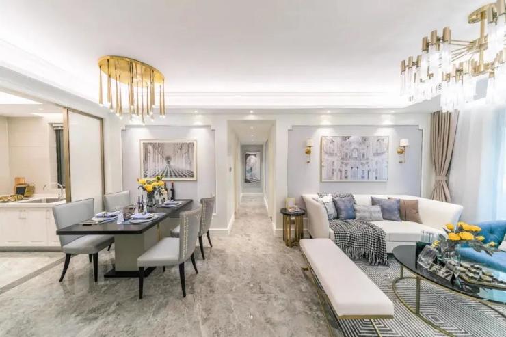 餐客厅一体化,兼顾尺度与舒适度,连接阳台,形成充裕的公共空间,拓宽视觉上的开阔感,同时为一家人的生活创造更多可能。